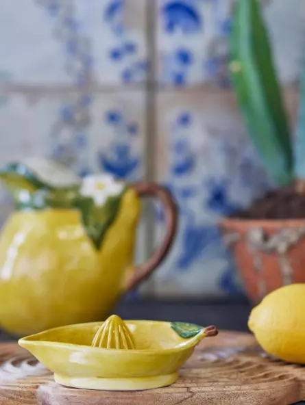 Formet som en sitron, med en sitrongul farge og en skalllignende tekstur, gir den kjøkkenet en leken og funksjonell sjarm.