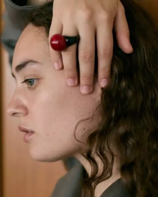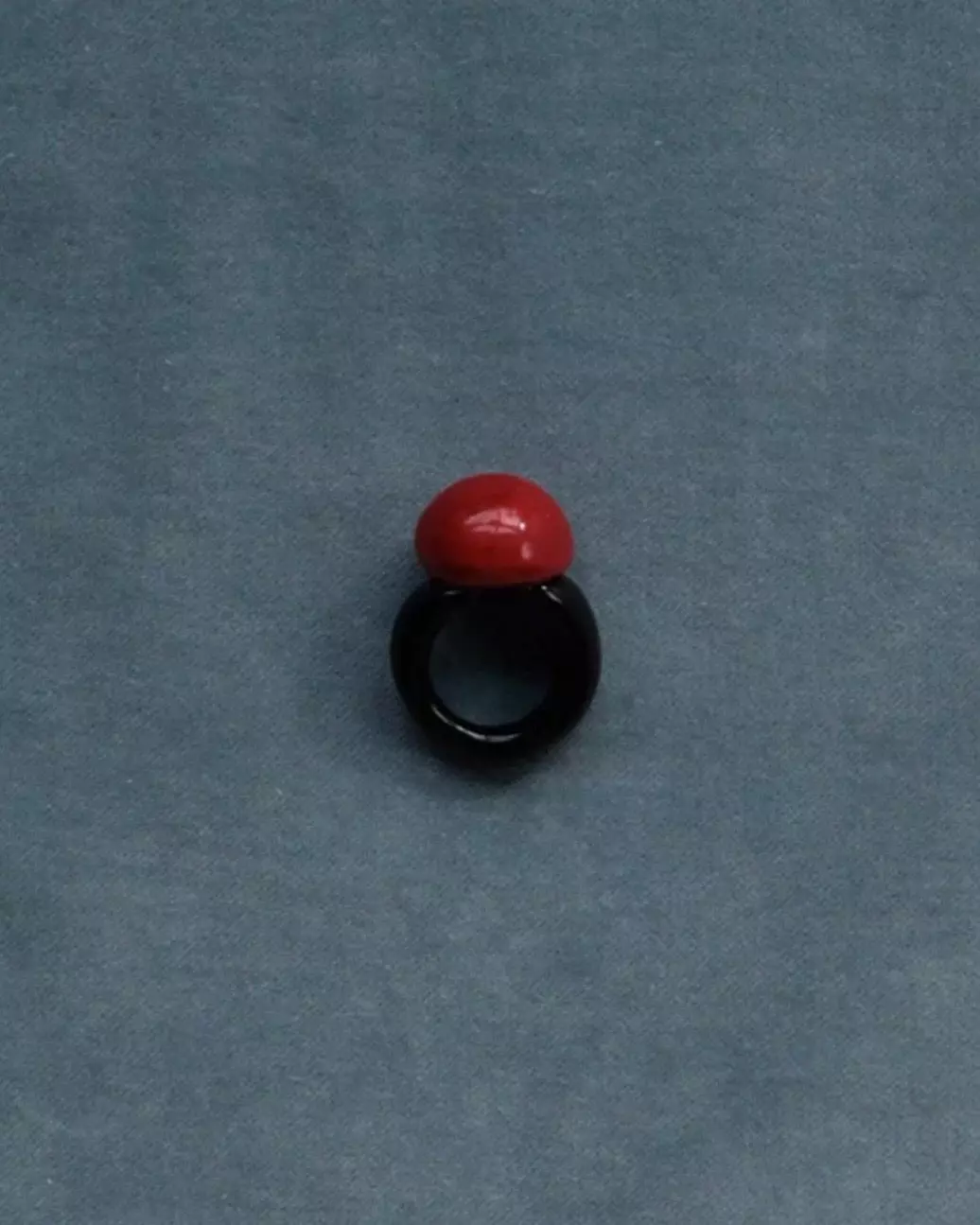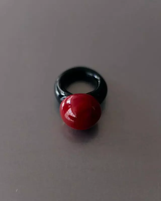 Ring fra Casa Ayllòn i ugjennomsiktig rødt og svart glass.