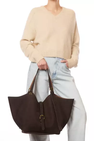 Veske med justerbare håndtak fra 40 cm til 74 cm, slik at den kan bæres i hånden eller på skulderen.