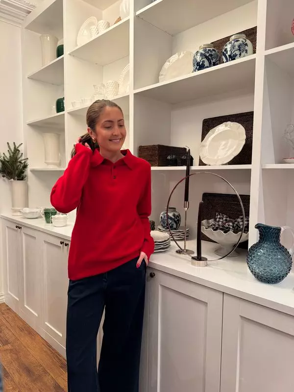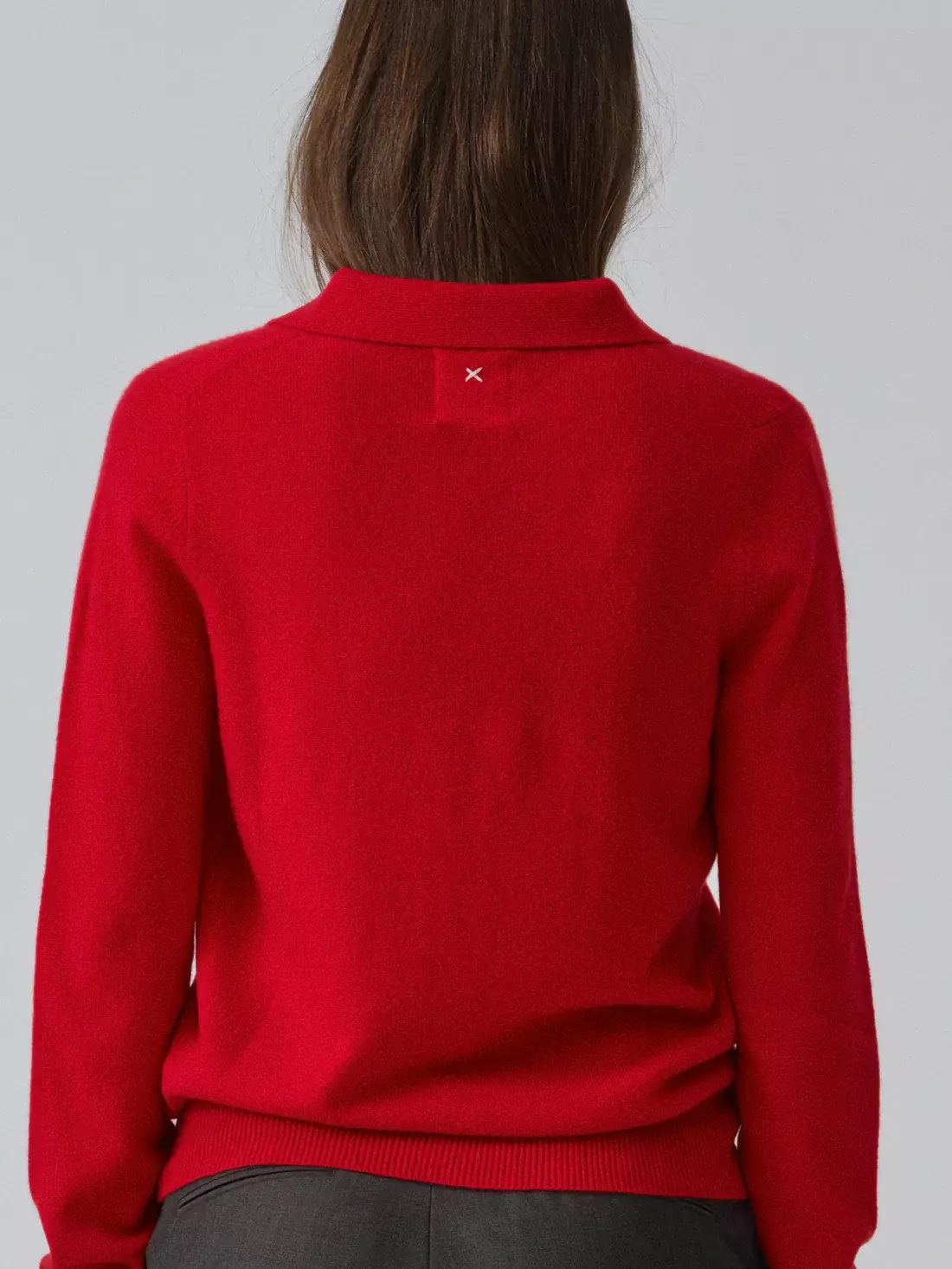 Original Polo genser fra Peoples Republic of Cashmere i rød. I myk 100% kasjmir er denne gensere med en avslappet, firkanted siluett ett must have i gardroben.